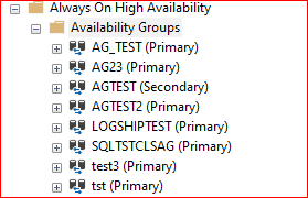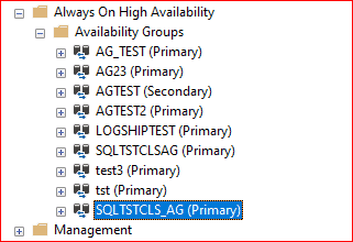 SQLTSTCLS_AG ismine sağ tıklayıp Delete dedikten sonra artık SQLTSTCLS_AG isminde AG yapımızı oluşturmuş oluruz.
