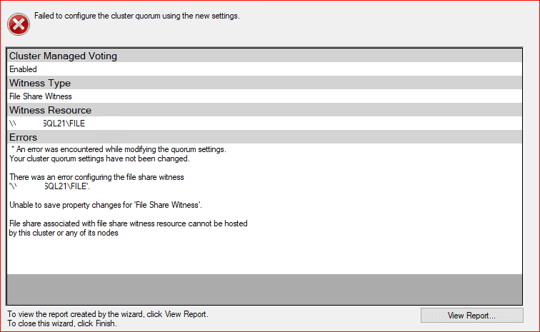 File share associated with file share witness resource cannot be hosted by this cluster or any of its nodes
