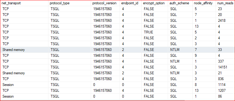 c.net_transport, c.encrypt_option from sys.dm_exec_connections c