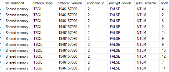 c.net_transport, c.encrypt_option from sys.dm_exec_connections c
