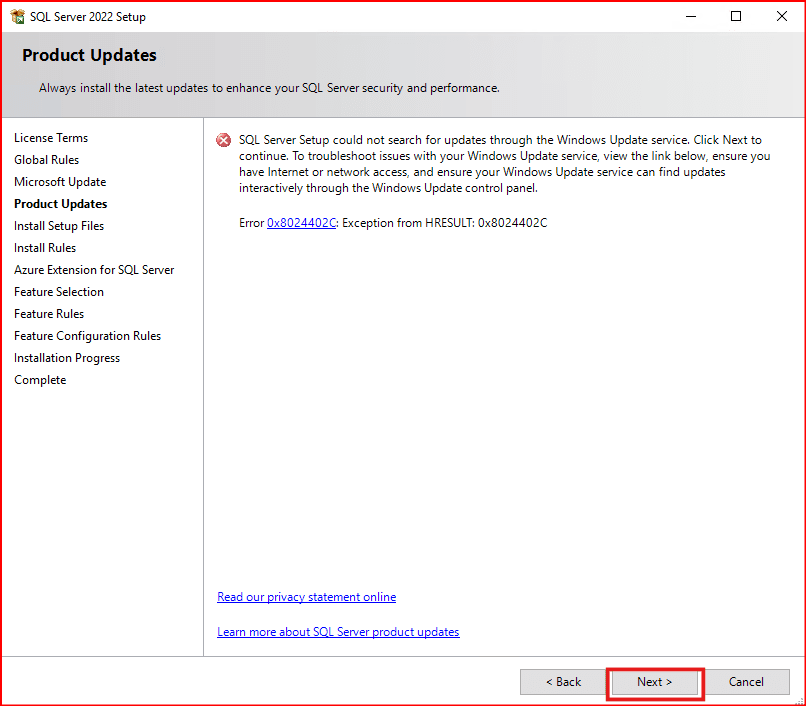 Gelen ekranda Azure Extension for SQL Server  bölümünde herhangi bir değişiklik yapmayıp Next deyip bir sonraki aşamaya geçiyoruz.