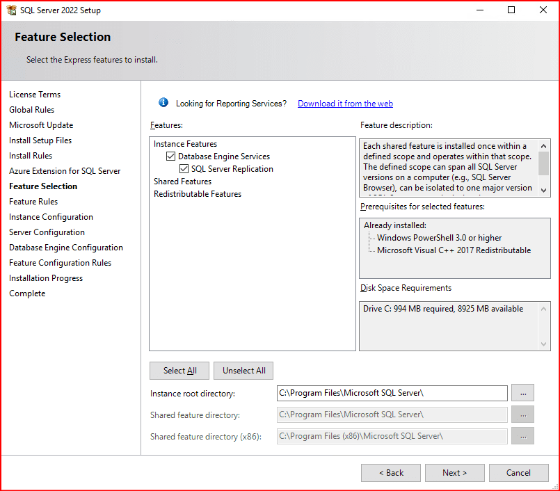 Not: Daha sonra ihtiyaç duymanız durumunda diğer özelikleri kurulumu tekrar başlatarak “Feature Selection” sekmesinden seçerek kurulumunu gerçekleştirebilirsiniz.