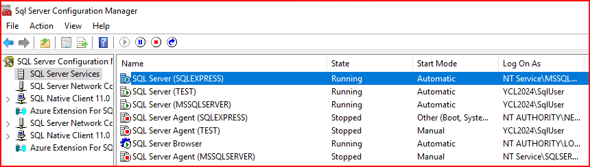 Sql server congifuration manager bölümünden sql server express’in kurulduğunu görmüş oluyoruz.