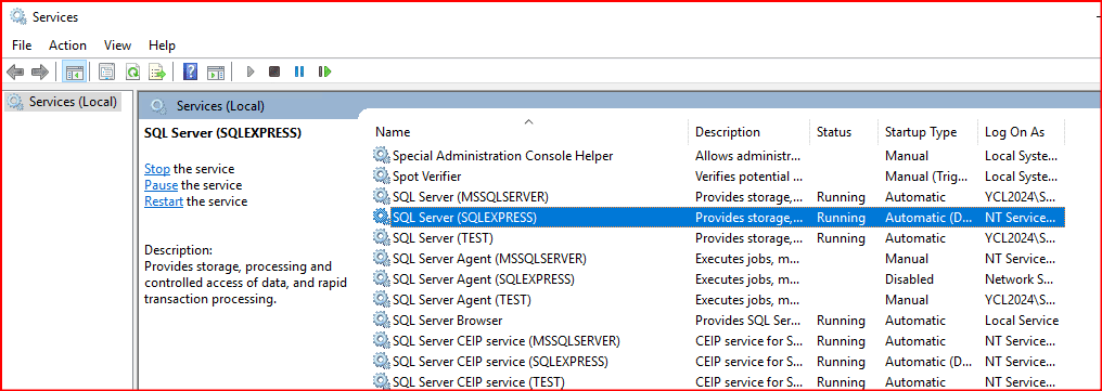 Aşağıdaki ekranda Sql Server Express servislerini görmekteyiz.