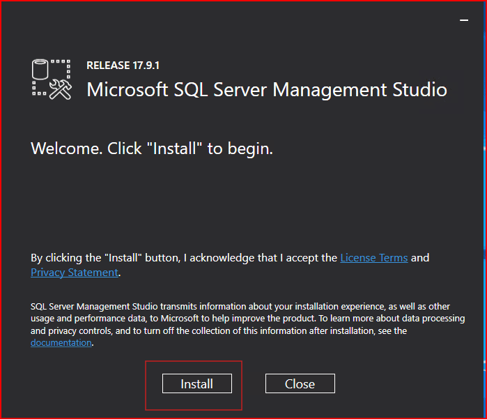 Microsoft’un sayfasından indirim işlemlerini yaptıktan sonra SSMS kurulumuna geçiyorum. Install deyip kurulumuma başlıyorum.