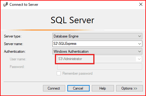 Sql server kurulumunda S2\administrator’ı Windows login olarak eklediğimiz için onunla giriş yapabiliriz.