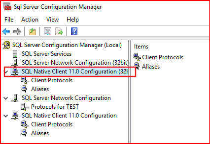 Gelen ekranda SQL Native Client 11.0 Configuration(32 bit) kısmına geliniyor.