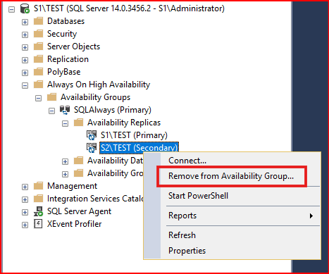 Bu makalede AlwaysOn yapısında herhangi bir sunucu ismini değiştireceğim bunun için ilk başta  ismini değiştireceğim replica’yı AlwaysOn yapısından ve cluster’dan çıkarıyorum. Daha sonra sunucu ismini değiştirdikten sonra tekrar cluster yapısına ve AlwaysOn’a almış olacağım.