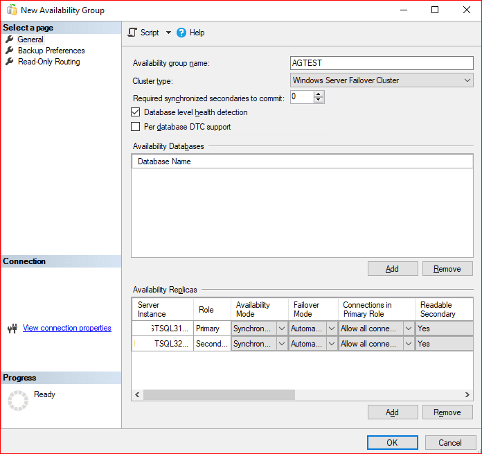 Yukarıdaki dikkat ederseniz Availability Databases kısmında veritabanı ekleme işlemi yapılabilir. Bu tamamen bizim tercihimize bırakılmış bir yapı olduğunu görmüş oluyoruz.