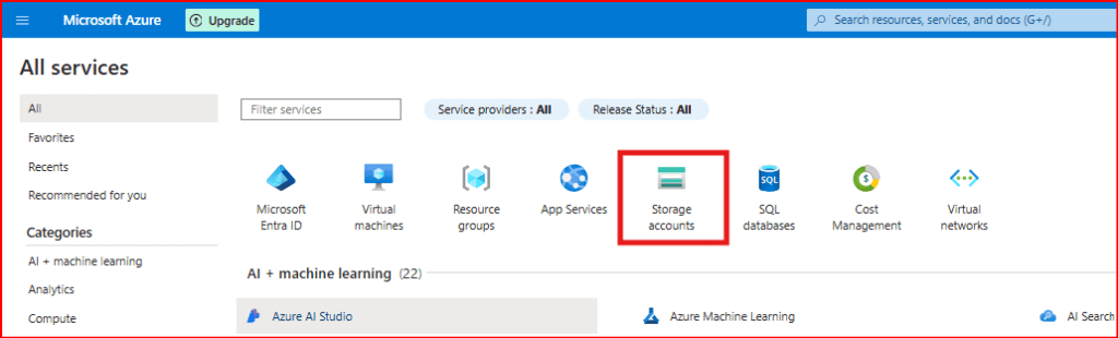 SSMS üzerinden backup almadan önce Microsoft Azure üzerinde depolama alanı konfigürasyonunun yapılması gerekmektedir. Bunun için Microsoft Azure Portal’ına giriyoruz.
