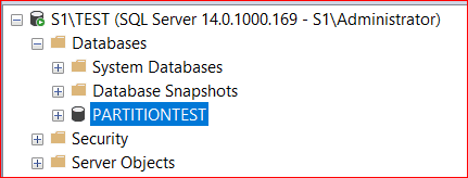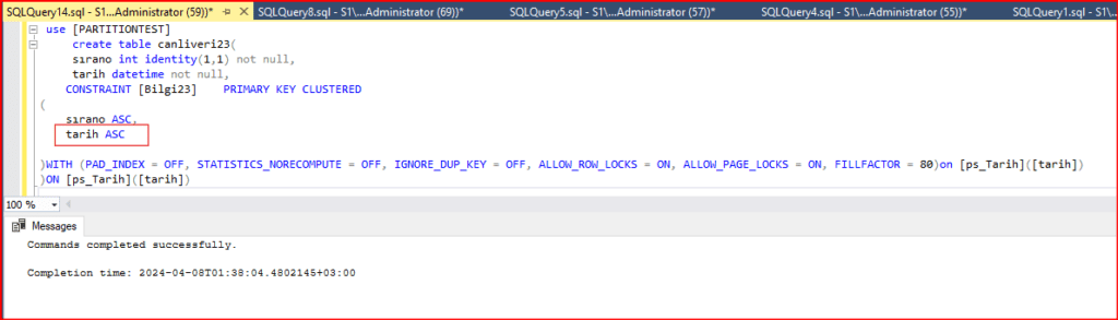 Bu veritabanı altında bir tablo oluşturulur ve içine sürekli verinin geleceği şekilde ama önceden bu tabloya farklı tarihlerde veri aktarılır çünkü partition’da ilgili file group’a yazılsın diye. Dikkat edilirse her şey partitionsız.