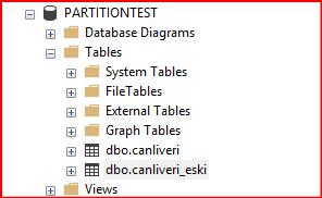 Bundan sonraki adımlar partition işlemi yapılacağı için önceki partition’suz tablomuzla aynı özelliklere sahip bir partition’lı bir tablo oluşturmak daha sonra partition işlemi yapıldıktan sonra tablo isimlerimiz rename yapıp canlı verilerimizin yeni tabloya gelmesini sağlayacağız bu süre zarfında veritabanı erişilemez olacaktır.(Tekrar belirteyim read-only file group varsa veritabanı erişilmez durumdayken rad-only moddan çıkılır.)