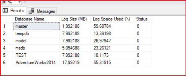 used_log_space_in_bytes / 1024 / 1024 AS UsedLogSpaceMB,-- log dosyasının ne kadarının kullanıldığını megabayt (MB) cinsinden gösterir.