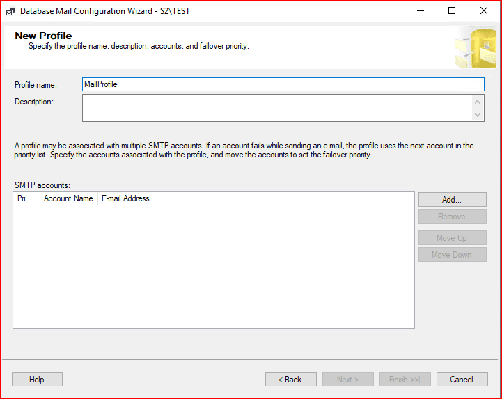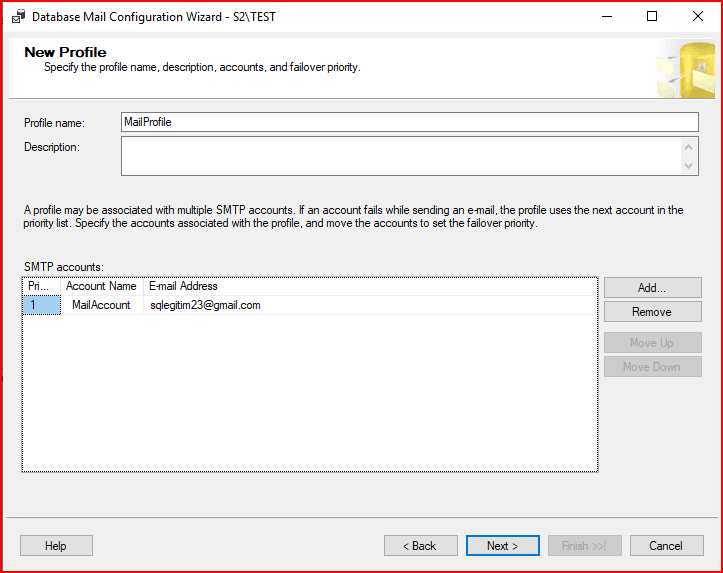 Profile Name: “MailProfile” adlı bir profil oluşturulmuş.