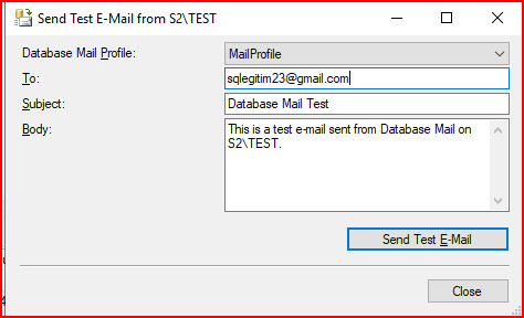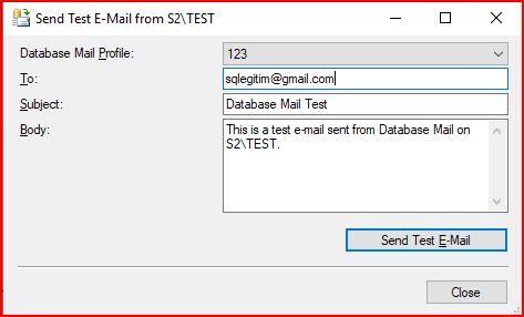 Şu unutulmaması gerekir. Başlangıçta profil oluşturarak kullanıcıya Mail gönderen hesabı belirlemiş olduk. Aşağıdaki resimde database mail profil başka bir mail adresinin profil adresi kime yollamak istiyorsak TO kısmına o mail adresi yazılır. Yani aşağıdaki resimde 123 profil altında tanımlanan mail adresinden sqlegitim23 hesabına mail atmış olduk.