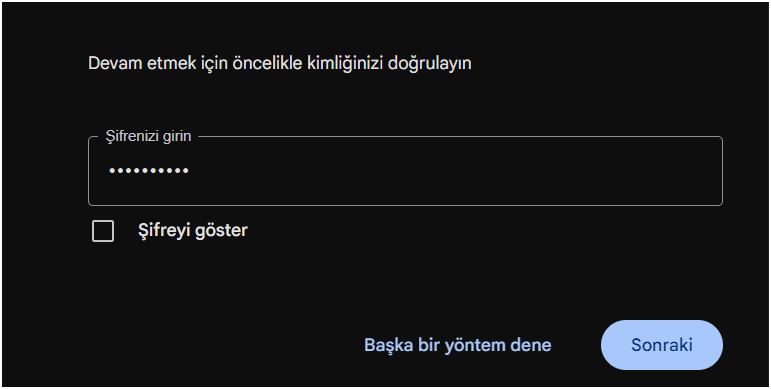 Bu yapı için bizden ilgili hesabımızın şifresini tekrardan sormaktadır. Şifremizi girip tekrardan giriş yapıyoruz.