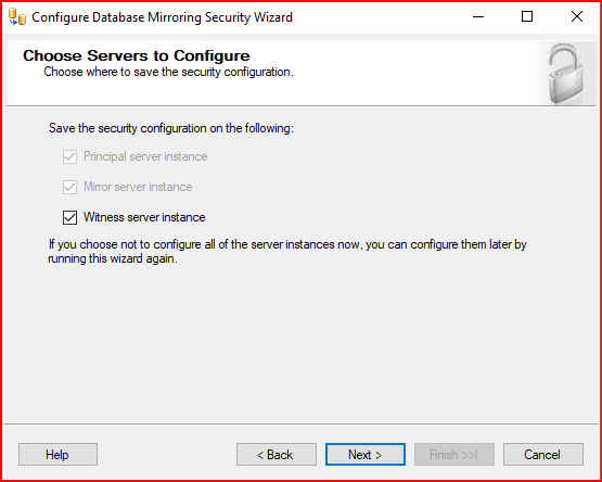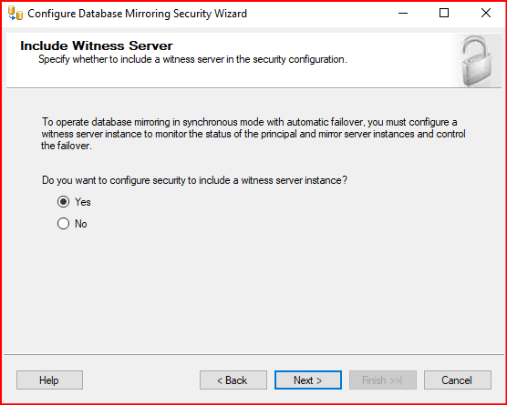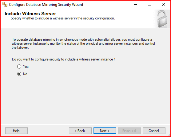 Database mirroring’in ikinci bir yöntemide High Safety with automatic failover yöntemidir. Bu modda database bazlı yapılan işlemler önce mirror veritabanına yazılır sonra princial database’e yazılır. Bu yapı performans sorunlarına sebep olmaktadır. Database mirroring yapısı alwayson yapısındaki senkron ve asenkron modun aynısıdır. Senkron olduğu için Witness server role kullanır. Witness server role bu yapıda tek kullanılmaktadır. Konfigürasyon ekranındaki üçüncü seçeneğimizdir.