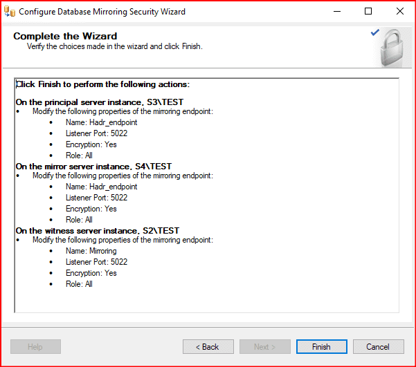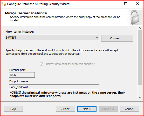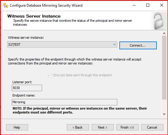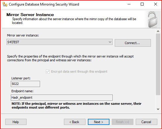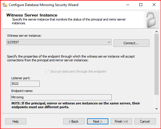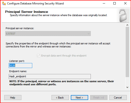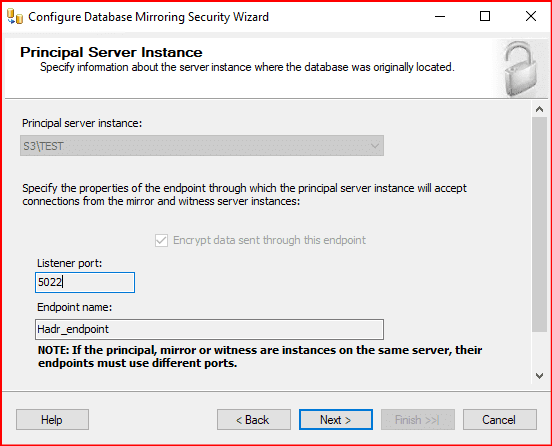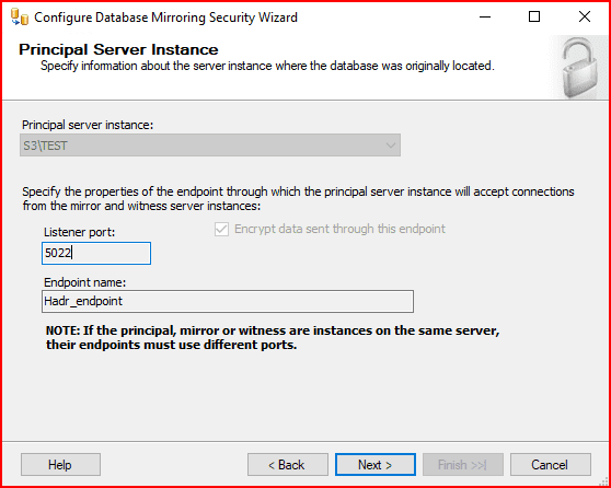 Burada şunu belirtmek gerekiyor. Listener port kısmı eğer kuracağımız principal, mirror ve witness aynı sunucu altında farklı instance yapısında ise farklı listener port verilir. Farklı sunucularda bu yapıyı oluşturursak 5022 olarak bırakılabilir. Bu yüzden benim senaryomda farklı sunucularda olduğu için default olan yapı kullanılır. Ya da kendimiz elle bir değer set edebiliriz. AlwaysOn yapısında da bu yapı böyledir.
