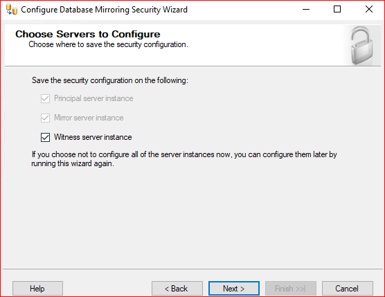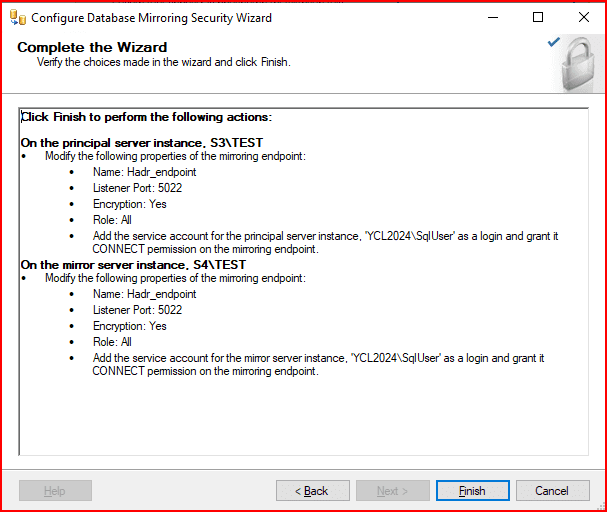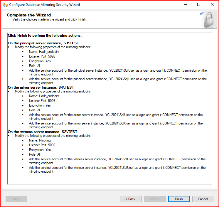 FOR DATA_MIRRORING (ROLE = ALL, AUTHENTICATION = WINDOWS NEGOTIATE