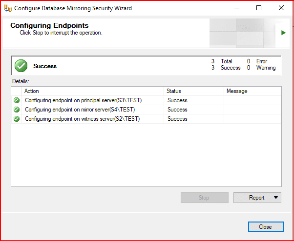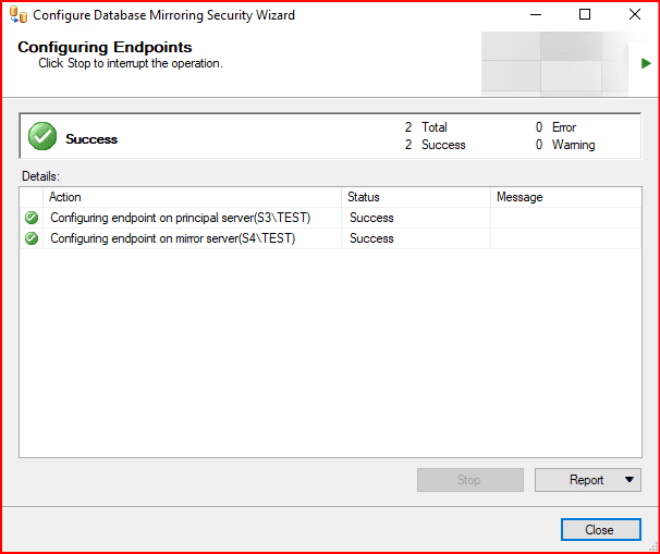 Başarılı bir şekilde Database Mirroring yapımızın oluştuğunu görmüş oluyoruz.