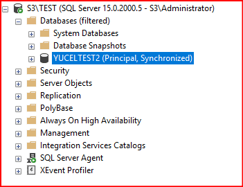 YUCELTEST2 database’ine tıkladığımda monitör ekranından Synchronized olduğunu görmüş olduk.