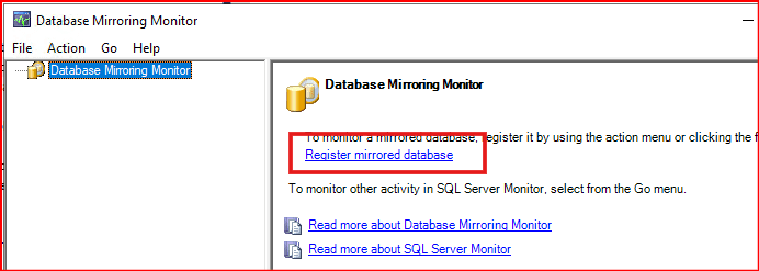 Gelen ekranda Go bölümünden Database Mirroring Monitor kısmına tıklıyoruz.