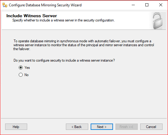 Gelen ekranda witness server kullanıp kullanmayacağımızı soruyor. Birinci örnek olarak witness server kullanacağımız için Yes deyip bir sonraki aşamaya geçiyorum.