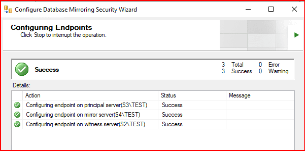 3 sunucumda da endpoint değişikliği yaptıktan sonra tekrar Witness database mirroring yapısını oluşturalım.