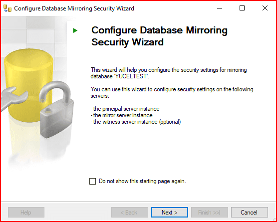 İşlemi tamamlayıp close dedikten sonra Start Mirroring kısmından başlatabiliriz. Database mirroring işlemini hemen başlatmayıp Do not Start Mirroring kısmını seçip sonra konfigürasyon yapabiliriz.