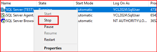 Şimdi otomatik failover işlemimizi yapalım bakalım sistem kendini otomatikmen S4 sunucusuna atıyormu. Bunun için S3\TEST sunucusunda servisi disable yapıyorum.