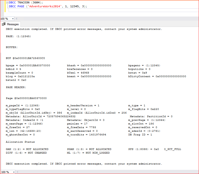 DBCC PAGE ('AdventureWorks2014', 1, 12345, 3);