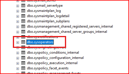 Sql server agent altında oluşturduğumuz operator’ler msdb veritabanı altında tablolarda tutulmaktadır.