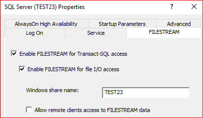 Not: filestream access level’= 2 olursa hem SQL Server’dan (T-SQL) hem de Windows dosya sisteminden erişebilirsin.