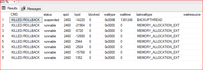 select CMD,status,*from sys.sysprocesses where spid=2460