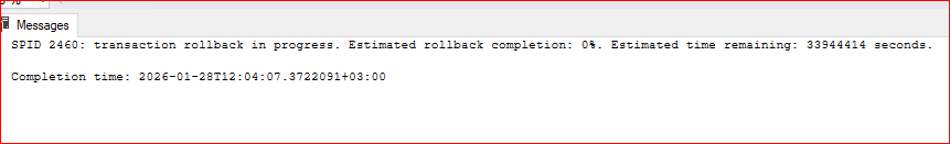 Bu yapıya sebep olan işlem eğer session büyük bir işlem (DELETE, UPDATE, index rebuild vb.) yaptıysa, SQL Server geri alma (rollback) yapar.