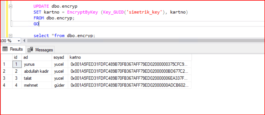 SET kartno = EncryptByKey (Key_GUID('simetrik_key'), kartno)