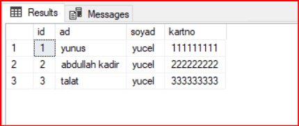 insert into encryp([id], [ad], [soyad], [kartno])values(3,'talat','yucel',333333333)