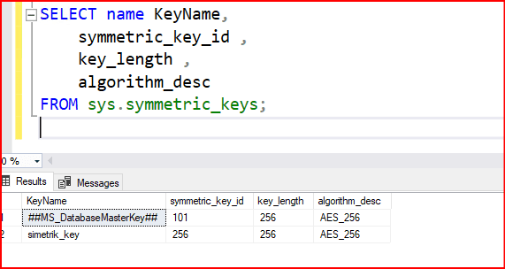 CREATE MASTER KEY ENCRYPTION BY PASSWORD = 'Parola23';