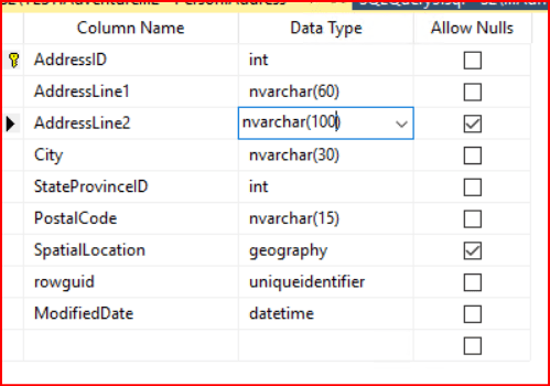 ALTER COLUMN [AddressLine1] [nvarchar](max) NULL