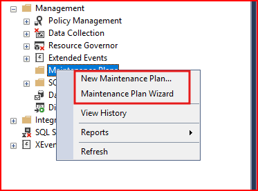 Maintenance Plan oluştururken iki seçenek karşımıza çıkar. Maintenance Plans kısmına sağ tıkladığımızda New Maintenance Plan.. ve Maintenance Plan Wizard kısmı karşımıza çıkmaktadır.