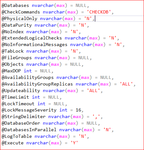@CheckCommands = 'CHECKDB',--CHECKFILEGROUP,CHECKTABLE.. yazılabilir.