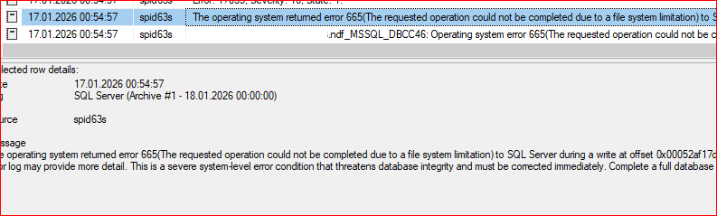 MSSQL Server “Operating system error 665.The requested operation could not be completed due to a file system limitation.” Hatasının Çözümü