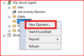 SQL Server Agent sekmesi altında bulunan Operator kısmına sağ tıklayıp New Operator seçeneğine tıklıyoruz.