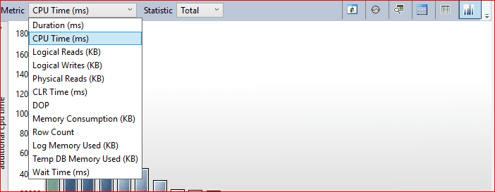 Mecutta bulunan sorgunun cpu, memory ve diğer tüm değerleri Metric kısmından seçip Statistics kısmında toplam değeri max-min değerini seçebiliriz.