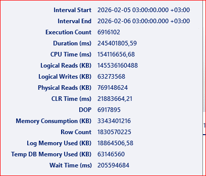Tracked Queries (İzlenen Sorgular): Belirli sorguların performansını izlemek için kullanılır. Özellikle kritik sorguların performansını sürekli olarak takip etmek ve bu sorguları optimize etmek için kullanılır.