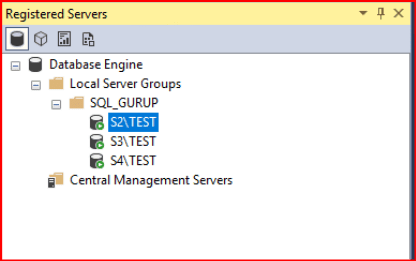SQL_GURUP üzerine sağ tıklayıp Object Explorer kısmında SQL_GURUP altındaki tüm sunucular otomatik olarak SSMS arayüzünde karşımıza gelmektedir.