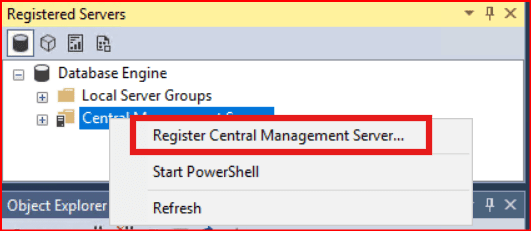 Registered Servers panelinde bir de Central Management Servers sekmesi bulunur. Standart kayıtlı sunuculardan farkı şudur: