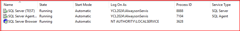 Aynı işlemleri Agent servisim içinde yapıyorum. Son olarak servislerim AlwaysOn yapısına dahil olmuş oldu.