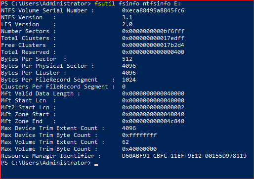 Aşağıdaki komut sayesinde diskimizin  Allocation Unit Size değerini cmd komut satırında veya powershell üzerinde gözlemleyebiliriz.