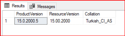 Rebuild işlemi bittiğinde instance bazında kontrol ettiğimizde collation yapımızın ve sql version’un rebuild öncesi ile aynı olduğunu görmüş oluyoruz.